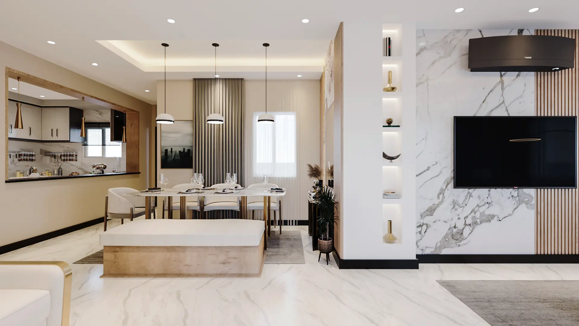 - التشطيب بأحدث المواد: يتم استخدام الخامات الحديثة مثل الرخام والسيراميك والبورسلين عالي الجودة، بالإضافة إلى الأسطح الخشبية الفاخرة التي تضفي جمالًا على المكان.